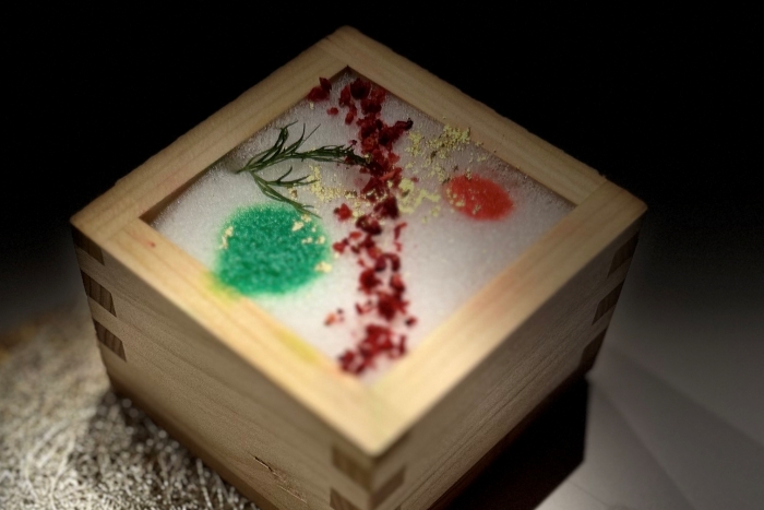 檜インフューズド iichiko彩天、柚子ジュース、レモンジュース、抹茶、卵白