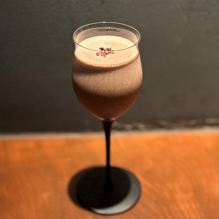 ブッシュミルズ、チョコプロテイン、アーモンドミルク、バナナ、檜ビターズ