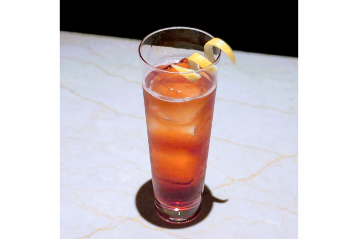 ブッシュミルズ 10年、ブラウンカカオ リキュール、グレナデンシロップ、ソーダ、レモン ツイスト