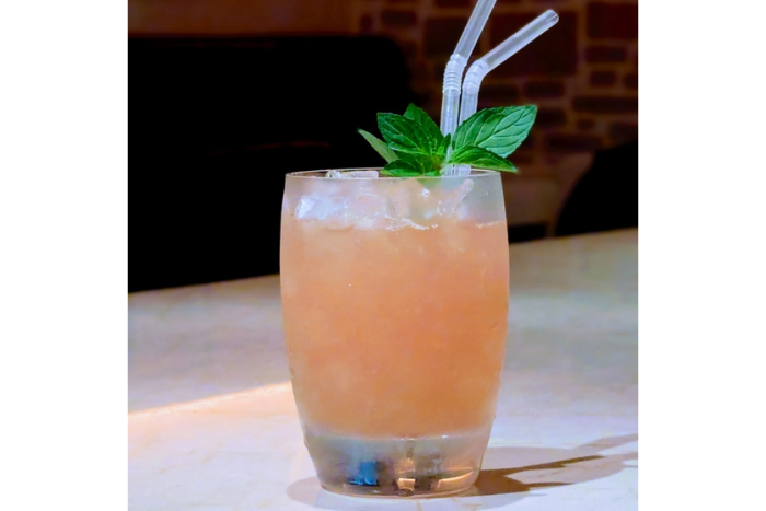 ルジェ クレーム ド フランボワーズ、ダークラム、パイナップルジュース、レモンジュース、 オルジェーシロップ、ミントリーフ