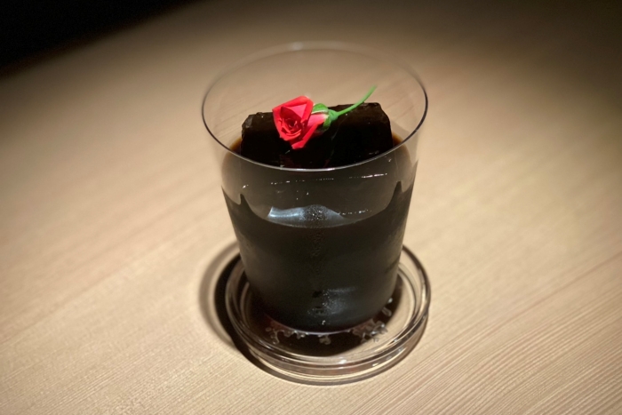 パトロン シルバー、ルジェ ビターカシス、イタリア産スイートべルモット、ブラックコーヒー、ベルローズ