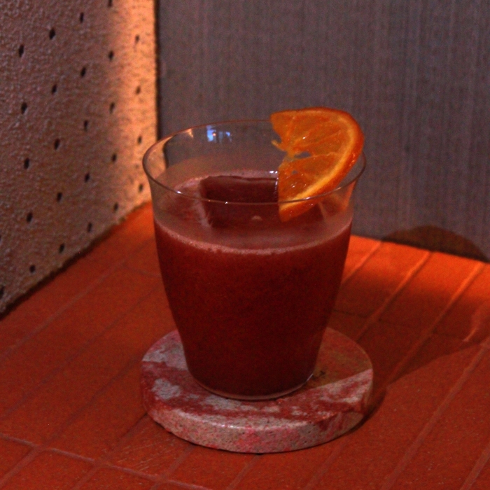 ルジェ ビターカシス、国産ドライジン、イタリア産チェリーリキュール、ゴイアバーダ(グァバペースト)、オレンジ、クランベリー、ライム、ドライオレンジ