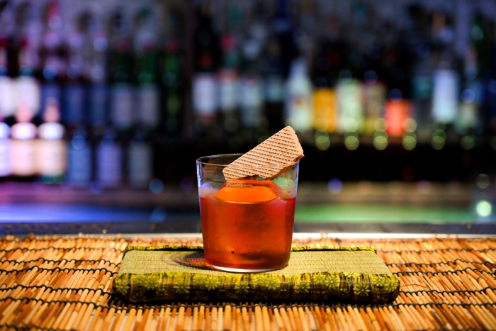 iichiko彩天、国産甘口赤ワイン、イタリア産ビターリキュール、カカオ、チョコレートビターズ、ウエハース