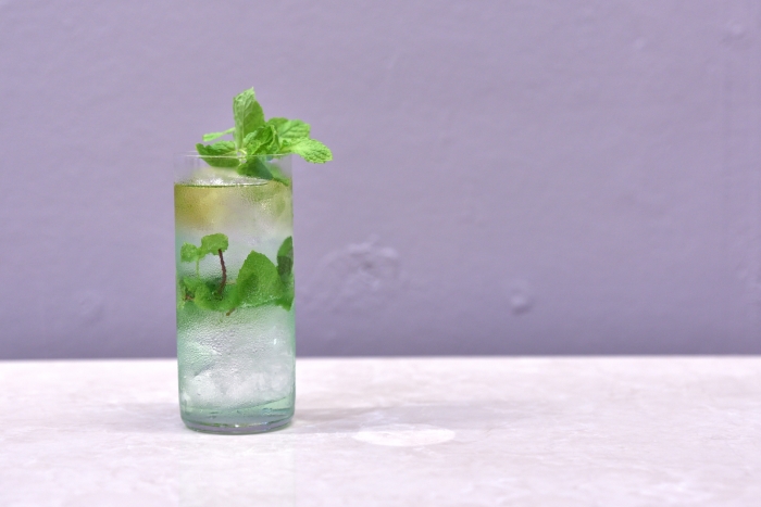 ブッシュミルズ 10年、ドライベツモット、ハーブリキュール、プロセッコ DOC、フレッシュミントの葉
