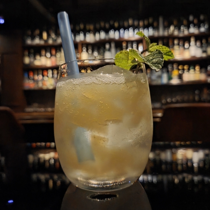 自家製パトロンゼリー (パトロン シルバー、グレープフルーツジュース、自家製シロップ)、トニックウォーター、フレッシュミント