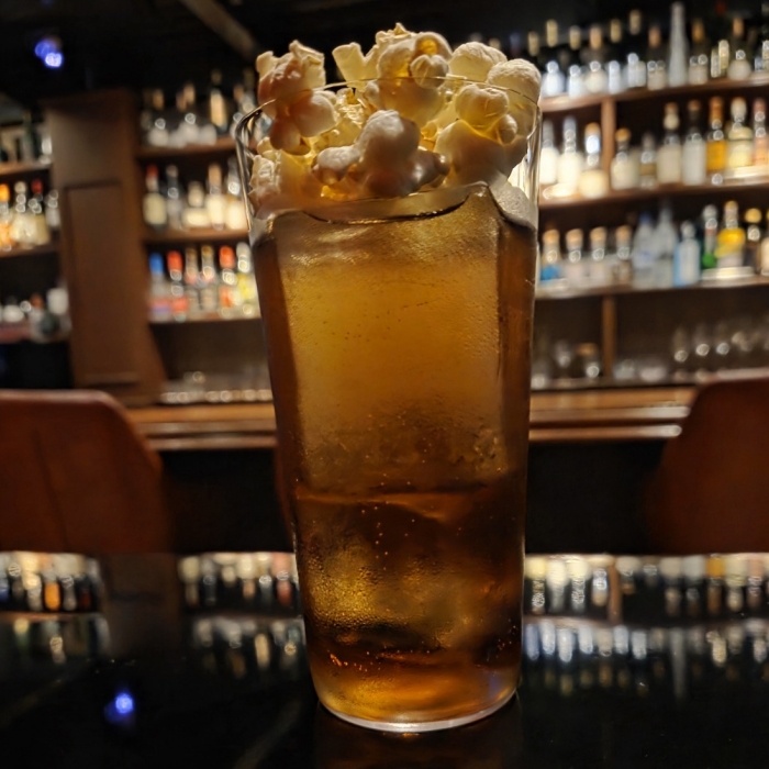 ブッシュミルズ 10年、ポップコーンシロップ、レモン、コーラ、ポップコーン