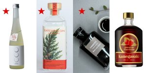 (左から、アーキバス、シングルモルトウイスキー桜尾、アレンビックHACHIBAN GIN、スカーレット、★Me、★TATAYAMA GIN、★栃木リキュール、金ケ崎クレーム・ド・フランボワーズ - 写真以外の商品もございます)